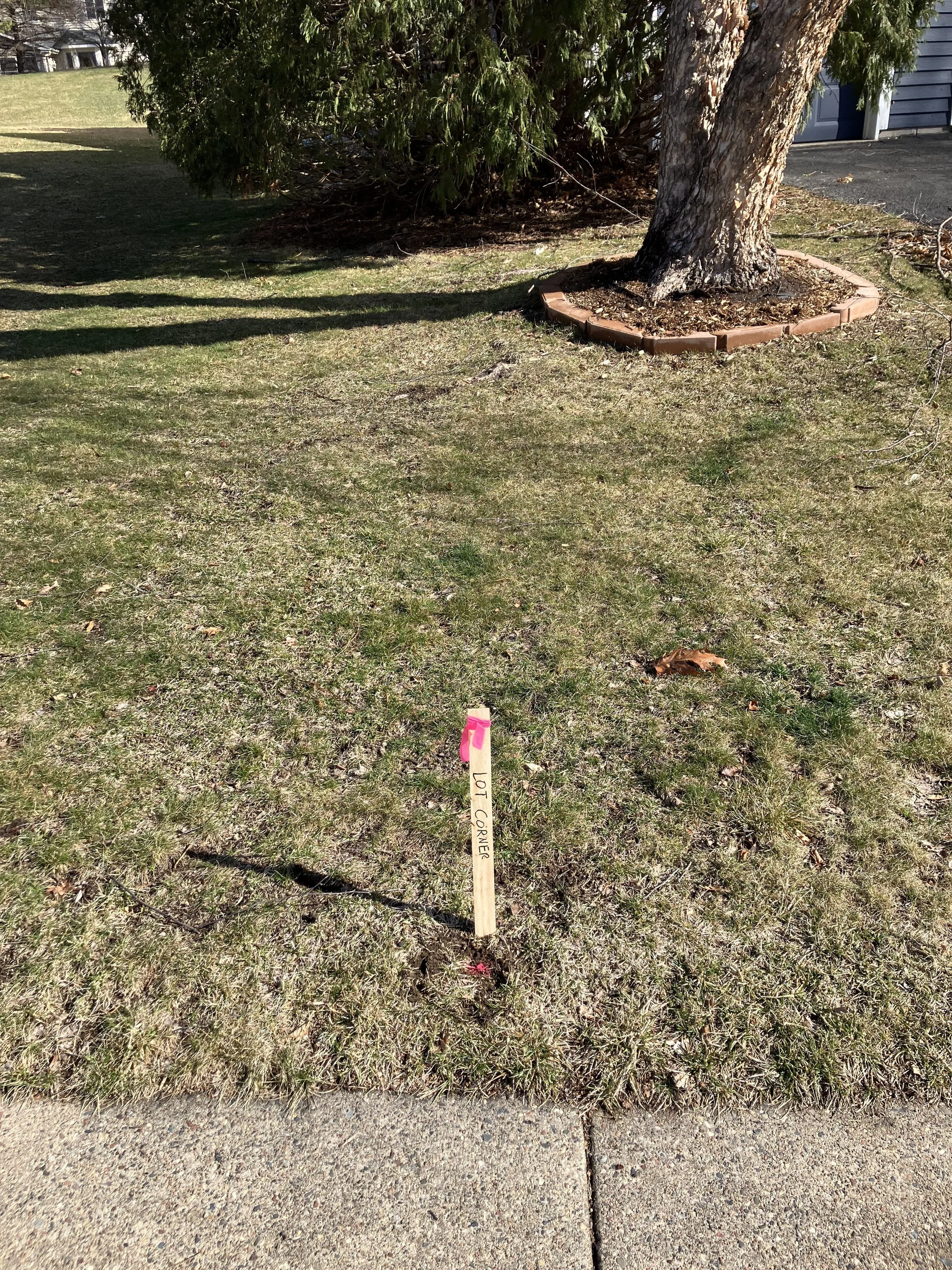We will locate and verify the property corners. We will re-establish corner monuments if they are missing. Corners will be marked with wood lathe and pink flags.